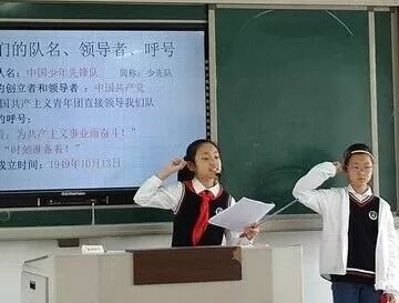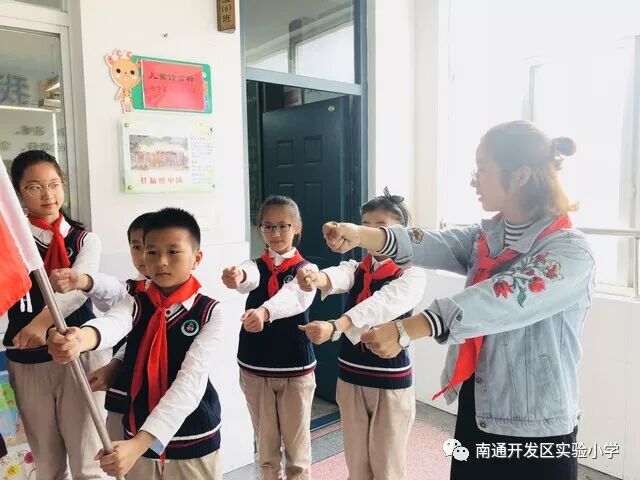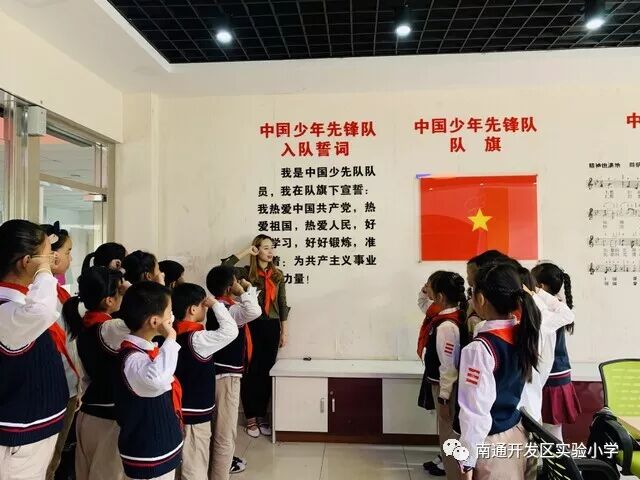 大队辅导员范老师带着大家在少先队活动室重温入队誓词