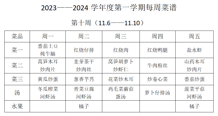 第十周菜谱(11.6——11.10)