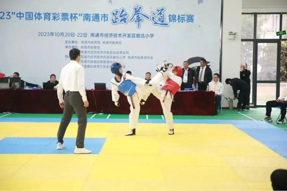 10月20日至22日,由南通市体育局、南通市教育局主办的2023年南通市青少年跆拳道锦标赛在南通开发区实验小学教育集团能达校区举行,共有来自南通市各县(市、区)的8支代表队、130余名运动员齐聚一堂,共享跆拳盛世。