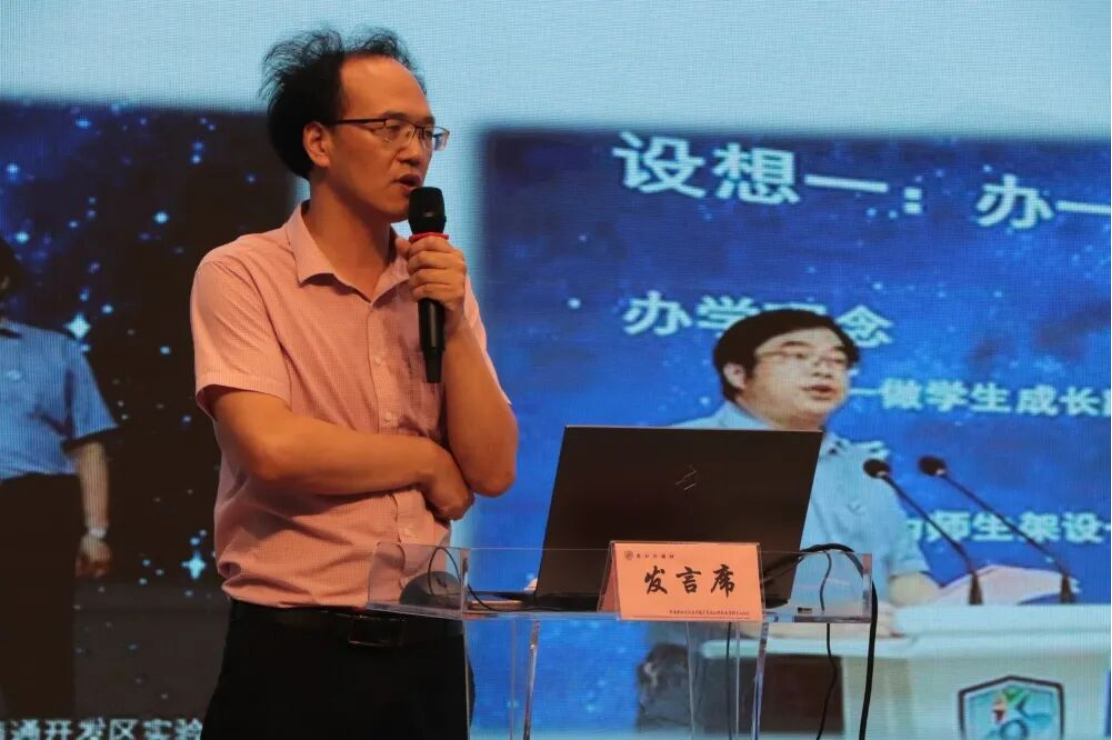 山西省阳泉市教研员代表表示星湖“亮”文化给其留下深刻印象,并与严亚雄副校长就课程文化建设及教师专业发展进行了现场互动交流。