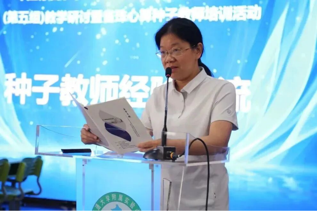 新河校区执行校长朱剑致辞 课堂观摩 珠动生慧,来自联盟学校的6位教师展示了6节精彩纷呈的课。她们的课堂设计巧妙,探究有法,真正实现思维碰撞,素养提升。 南通市经济技术开发区实验小学教育集团 缪丽花 南通市小海小学 陈小美 扬州宝应县实验小学 刘露 南通市如东县丰利小学 李阳 南通市经济技术开发区实验小学教育集团 翟露露 南通市经济技术开发区实验小学教育集团 缪欣廷 瞧!小小龙娃训练有素,自信大方,乐于分享,表达合理。执教老师、听课老师们频频点头,无不称赞。 主题报告 实小集团珠心算总教练杨晓林做了《聚焦“双减”,优化珠心算课堂练习设计》的主题报告。报告从课始、课中、课尾三个不同时段,结合具体课例,详细讲述如何优化珠心算课堂练习设计,报告有温度、有高度、有深度,令人深思。 教材解读 省珠心算种子教师徐宝琴,杨美娟分别对珠心算乘、除法基础知识及教材进行了解读,老师们一边专注地听着,一边认真地记着笔记,还不时地拨拨算盘。 经验分享 种子教师经验交流由江苏省特级教师、镇江市丹徒区青少年活动中心主任钱志平主持。不同的老师讲述着不同的故事,不同的故事呈现了不同学校的老师对珠心算教育实验的共同的情怀和孜孜不倦的追求。 微格教学 微格教学由常熟市塔前小学校长顾培华主持。种子教师和骨干教师们抽签确定了微格教学的课题。六个小组六个课题,老师们精心设计,抱团研究,在很短的准备时间里明重点、破难点、思框架、理细节、备道具、精展示。种子教师精彩到位的点评以及最佳组合和最优组合的评选、颁奖将活动推向了高潮。 1 2 3 4 5 6 领导总结 活动最后,江苏省中小学教学研究室主任郭庆松充分肯定了本次活动并提出三点思考,为我们今后的研究指明了方向。 江苏省珠算协会秘书长陈国忠对本次活动高度赞赏,认为本次活动实用性强,希望老师们活学活用,肩负起辐射传承的作用。 “博观而约取,厚积而薄发”。为期两天的研讨活动,围绕“聚焦双减,优化课堂练习设计”的主题,既有课堂实践层面的示范研讨,又有专家理论层面的高度引领,为珠心算实验教学工作明确了目标、指明了方向,相信未来的珠心算实验一定会在教学探索的道路上越走越好! END 珠算联盟 研讨 文字 | 王茜茜 图片 | 杨晓林 缪丽花 编辑 | 胡梦娇 审核 | 郁菊香 南通开发区实验小学教育集团